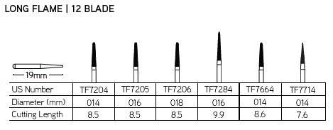 The highly versatile DynaCut Trimming And Finishing Carbide Bur 7214 brings strength with its long flame head made of tungsten carbide. Carbide is known for retaining its shape even after repeated use, making this a reliable tool. To make sterilization easier, the shank offers anti-corrosion properties, too.