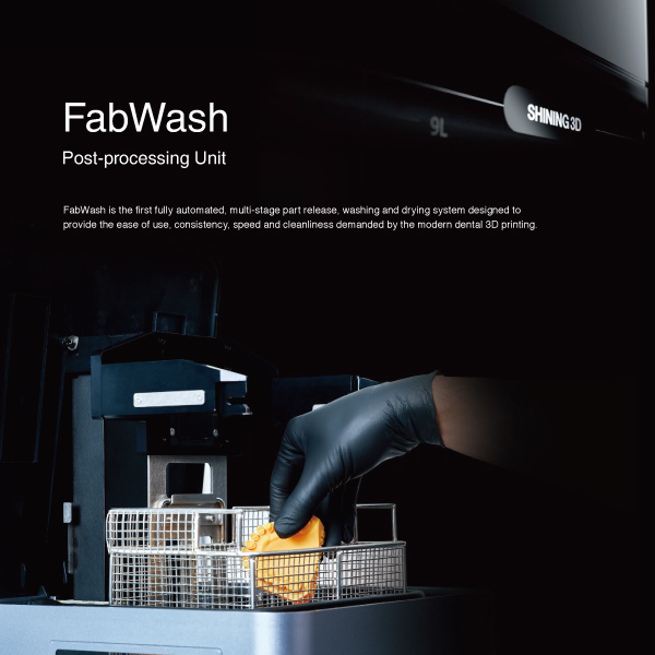 FabWash, from SHINING 3D, is the first fully automated, multi-stage part release, washing and drying system designed to provide the ease of use, consistency, speed, and cleanliness demanded by modern dental 3D printing.