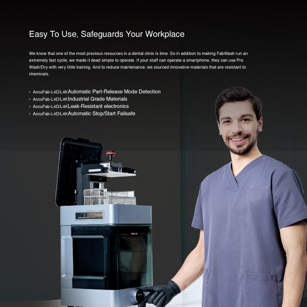 Inspired by the latest input from the dental community, FabWash is designed for instant part release, eliminating the risk of damaging parts using traditional removal tools. FabWash prepares optimal motion logic for each material to deliver a superior, hassle-free part release experience.