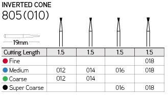 Try the Galil Multi Use Diamond Bur Inverted Cone 805, which features a 19mm length. This tool also comes with the option of fine to super coarse cutting lengths.