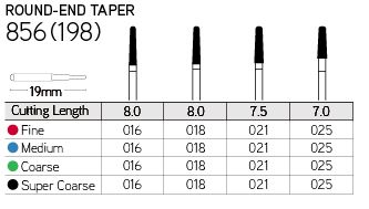 The Galil Multi Use Diamond Bur Round End Taper 856 features a round end taper shape that makes for an exceptional multi-purpose tool. With your choice of cutting lengths, which range from fine to super coarse, you can have the precision you need.