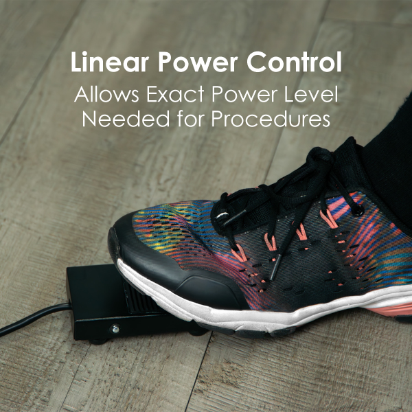 - Linear power control delivers the exact energy needed for each procedure