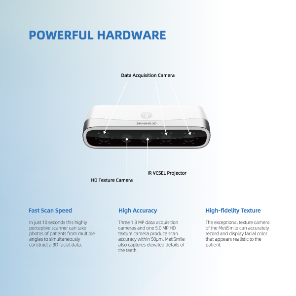 - High-fidelity Texutre — The exceptional texture camera of the MetiSmile can accurately record and display facial color that appears realistic to the patient.