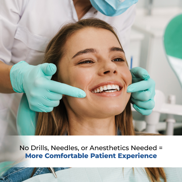 - Non-Invasive: No Drills, Needles, or Anesthetics Needed